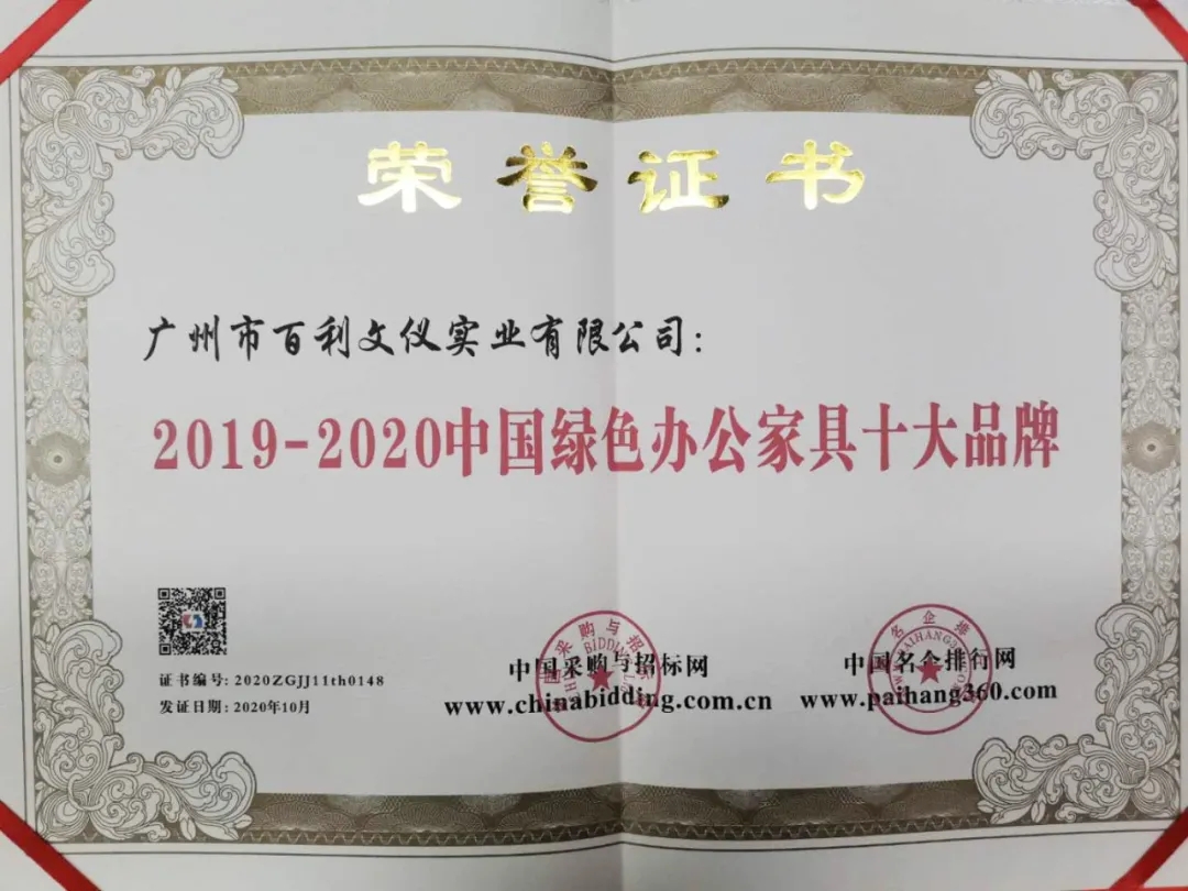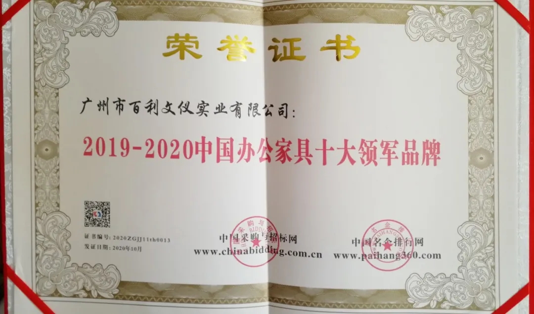 憑借扎實的業績基礎、良好的客戶口碑以及廣泛認可的行業影響力,在頒獎晚會中,百利集團獲得“2019-2020中國辦公家具十大領軍品牌”“2019-2020中國綠色辦公家具十大品牌”、“2019-2020中國家具供應商綜合實力百強”第七名等多項殊榮。