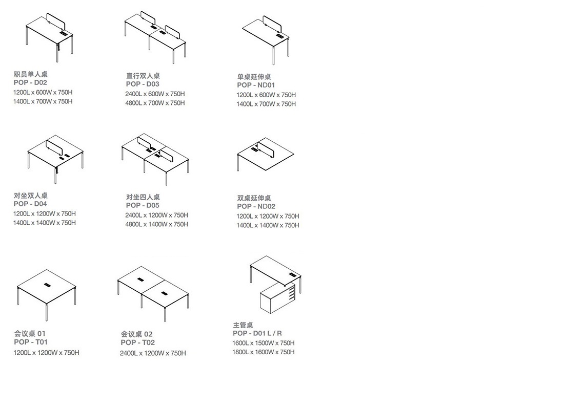 1200L x 600W x 750H 1400L x 700W x 750H