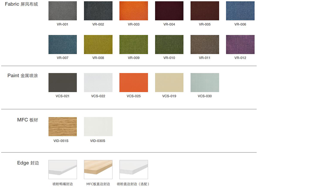 Fabric 屏風布絨 Paint 金屬噴涂 MFC 板材